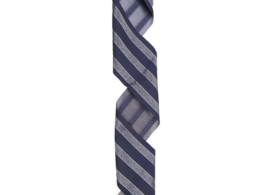 Luxusní historická stuha inspirovaná antickým uměním. Precizní tkaný vzor s motivem spirál (volut/meandr) vychází z dekorativních prvků starověkého Řecka a Říma. Vhodná pro historické rekonstrukce, divadelní kostýmy, liturgické oděvy i exkluzivní řemeslné projekty.