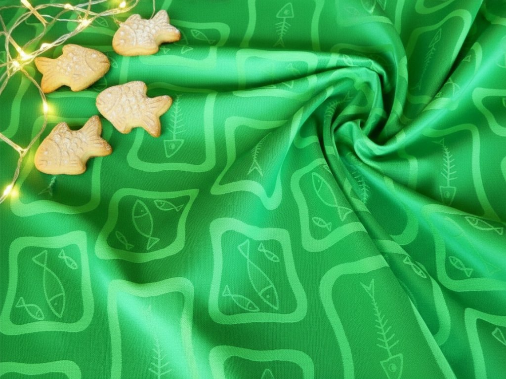 Vánoční látka se vzorem ryb doladí vánoční atmosféru na nejvyšší stupeň.