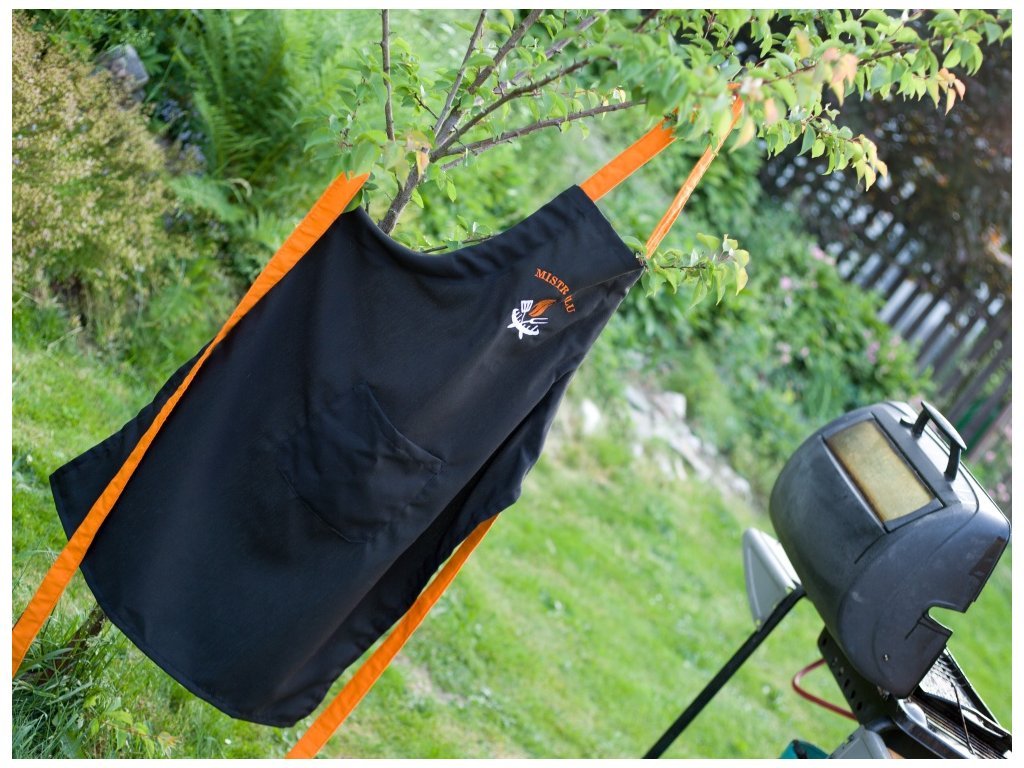 Apron with bib and pocket with embroidery MISTR GRILU black