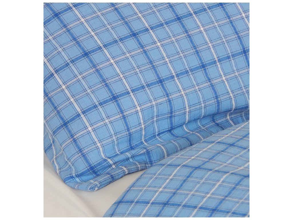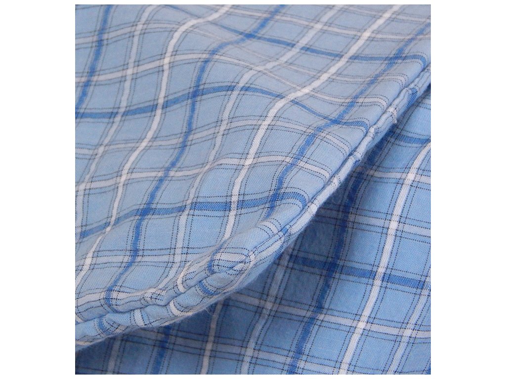 Krásné dětské krepové povlečení pro kluky i holky, s tkaným vzorem - káro v barvě modré , rozměry 45 x 60 cm polštář a přikrývka 130x90 cm. Povlečení je vyrobené z kvalitní 100% bavlny s klasickým zapínáním na knoflíky.