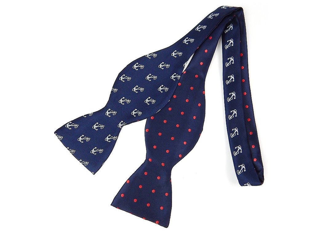 Oboustranný motýlek s námořnický motivem nabízí hned dva možné varianty nošení. Záleží, jak si ho uvážete. Preferujete vtipný námořnický vzor s kotvami nebo jednoduché červené puntíky?