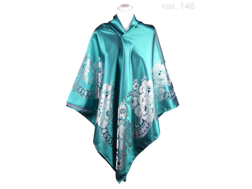 Folklor scarf Ondrin VSh 160x160 ROSE AND LACE turquoise