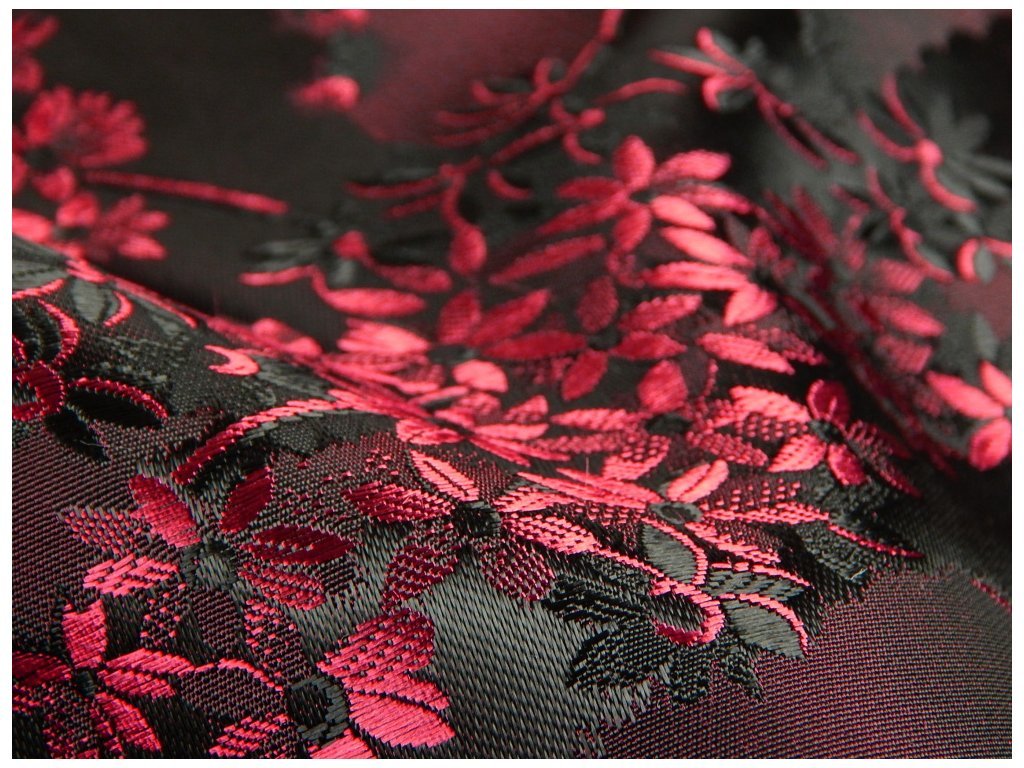 Costume brocade - a unique textile material with woven floral patterns. A wide range of color variations, some complemented by woven rexor. Costume brocade is produced for specific regions for the production of national costumes, costume skirts, aprons, and other costume components.