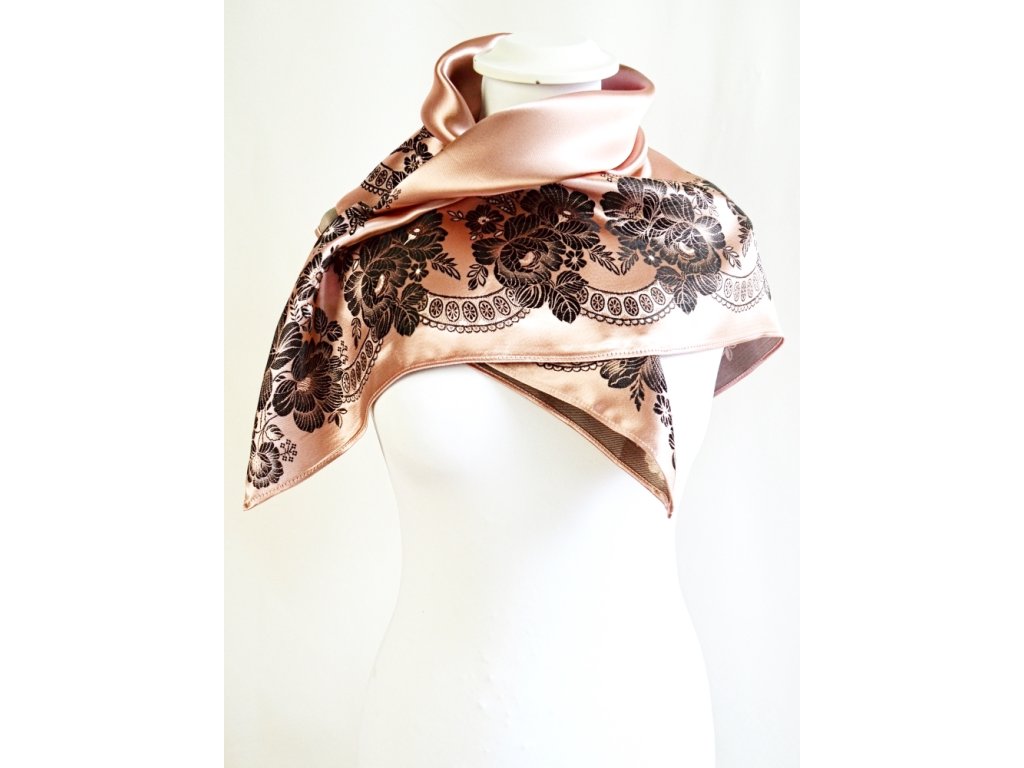 Folklore scarf Ondrin VSh 77x77 ROSE AND LACE salmon