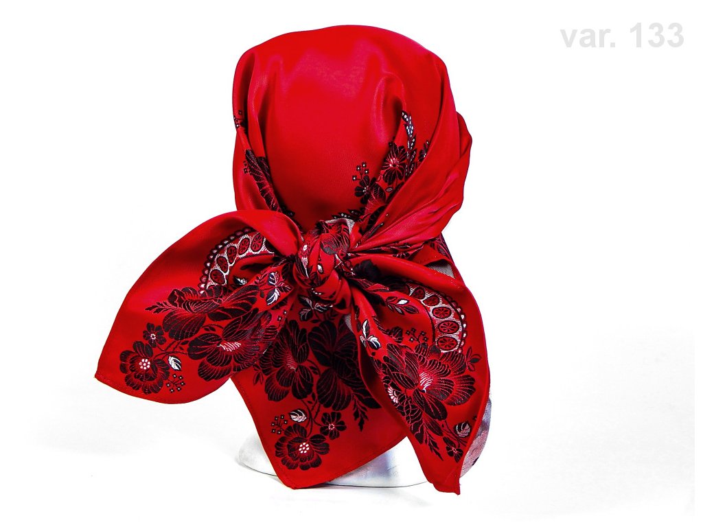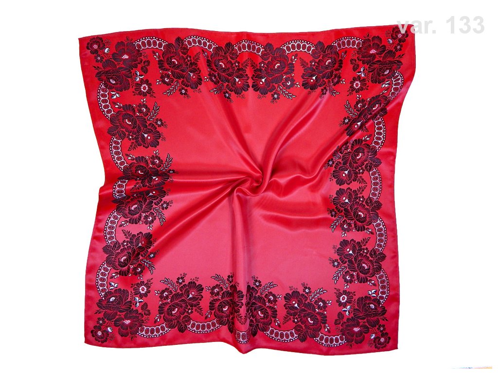Folklore scarf Ondrin VSh 78x78 ROSE AND LACE red