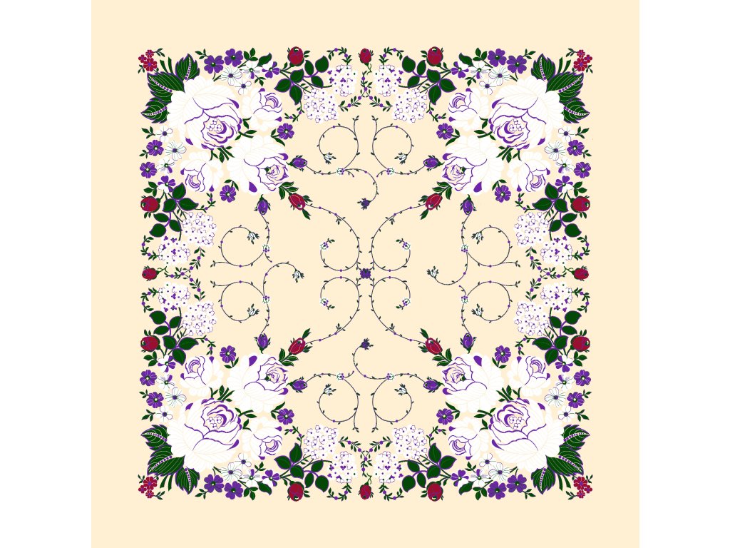 Folklore scarf Ondrit HYDRANGEA WITH WHIPS cream