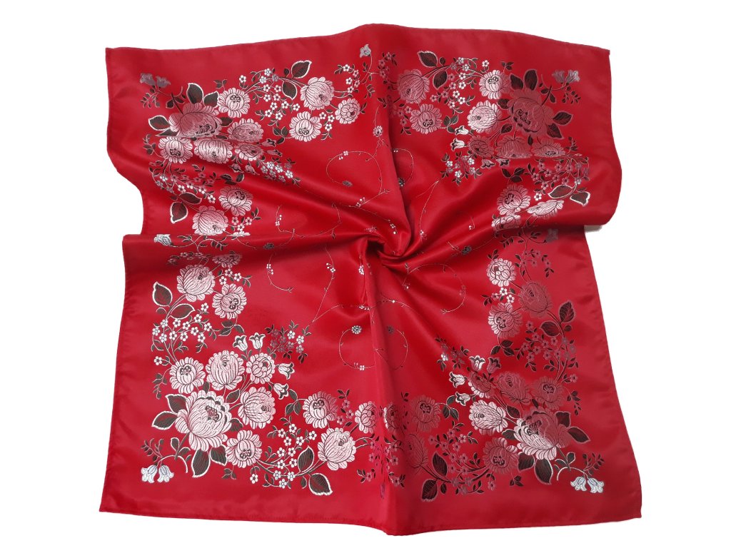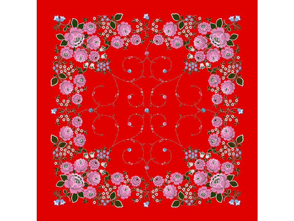 Folklore scarf Ondrit Vsh 76x76 BELLFLOWERS red