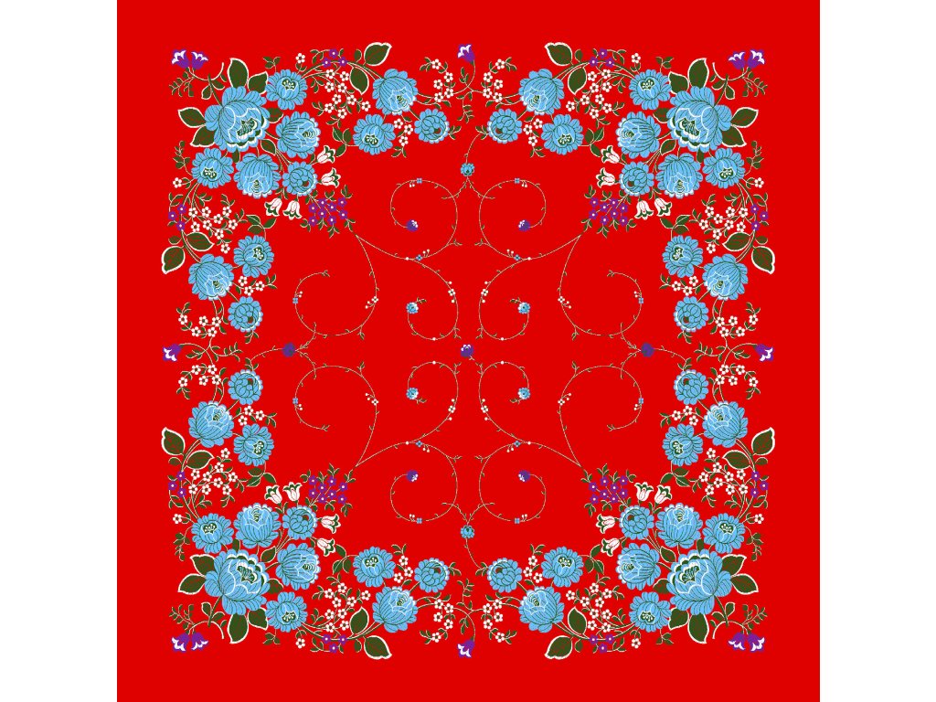 Folklore scarf Ondrit Vsh 76x76 BELLFLOWERS red