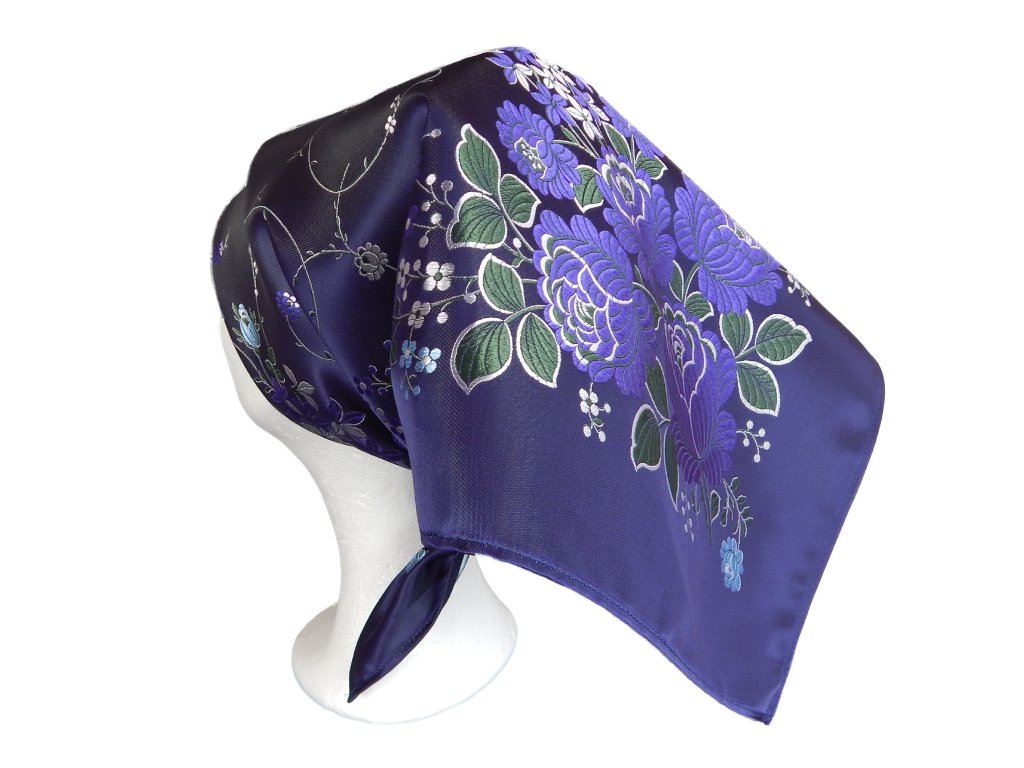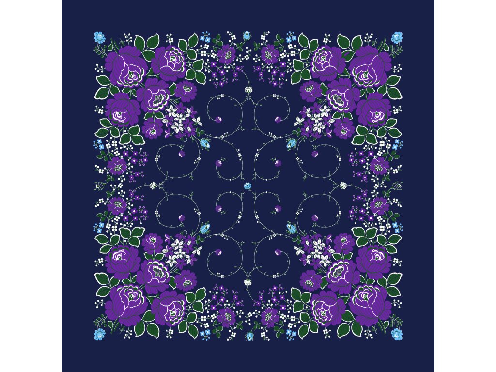 Folklore scarf Ondrit Vsh 76x76 BOUQUET WITH WHIPS blue