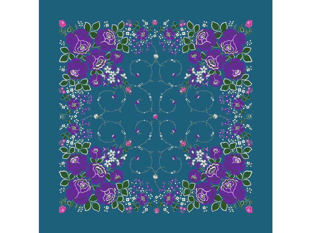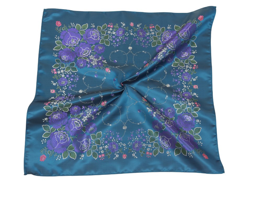 Folklore scarf Ondrit VSh 76x76 BOUQUET WITH WHIPS petrol