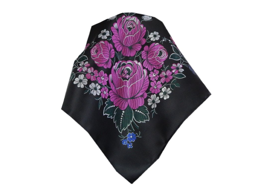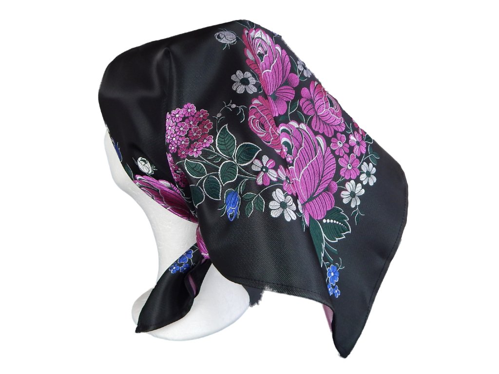 Folklore scarf Ondrit Vsh 76x76 HYDRANGEA black
