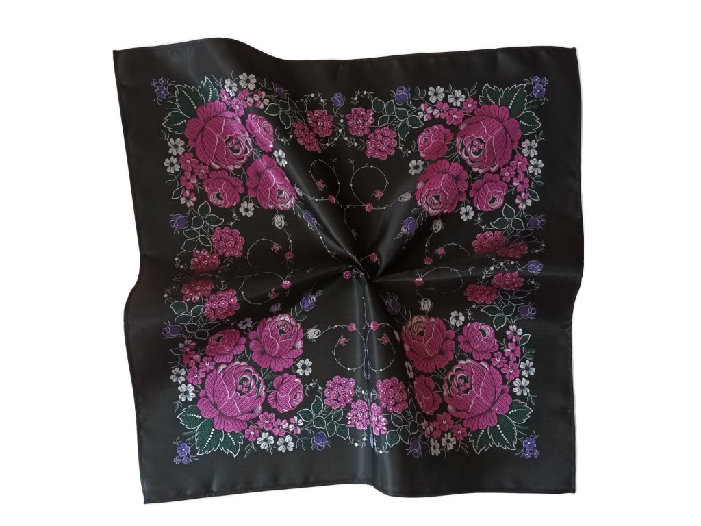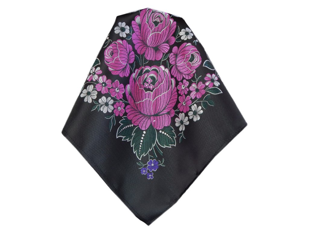 Folklore scarf Ondrit Vsh 76x76 HYDRANGEA WITH WHIPS black