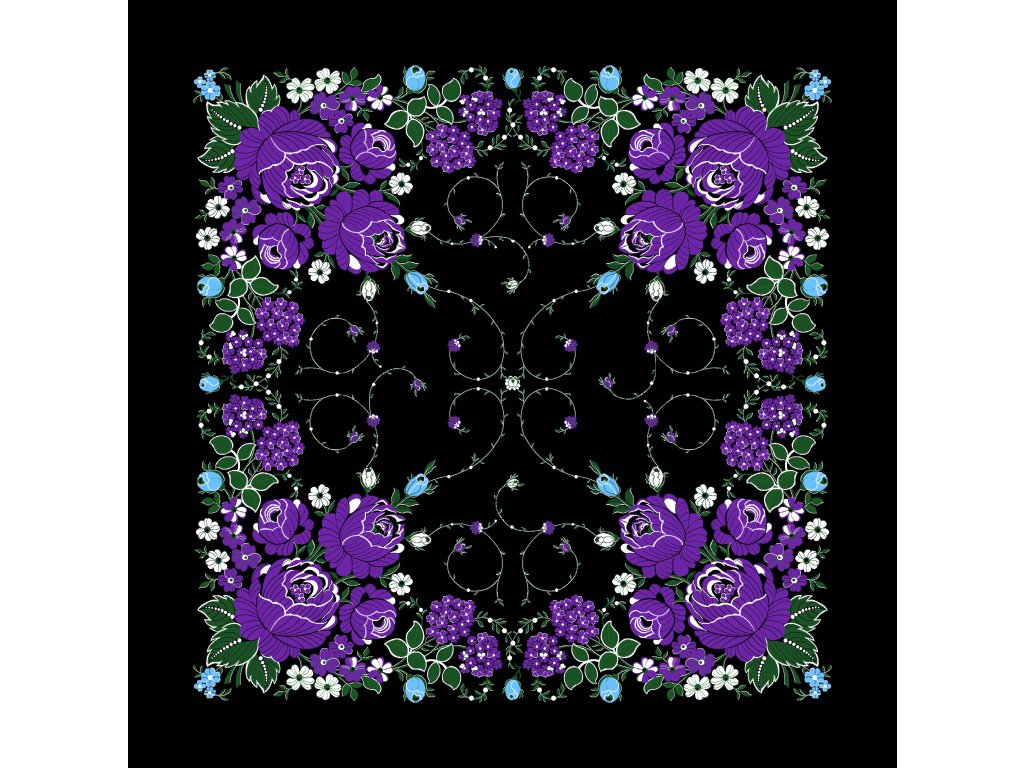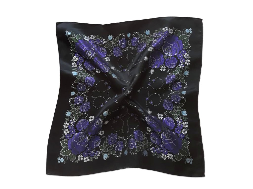 Folklore scarf Ondrit Vsh 76x76 HYDRANGEA WITH WHIPS black
