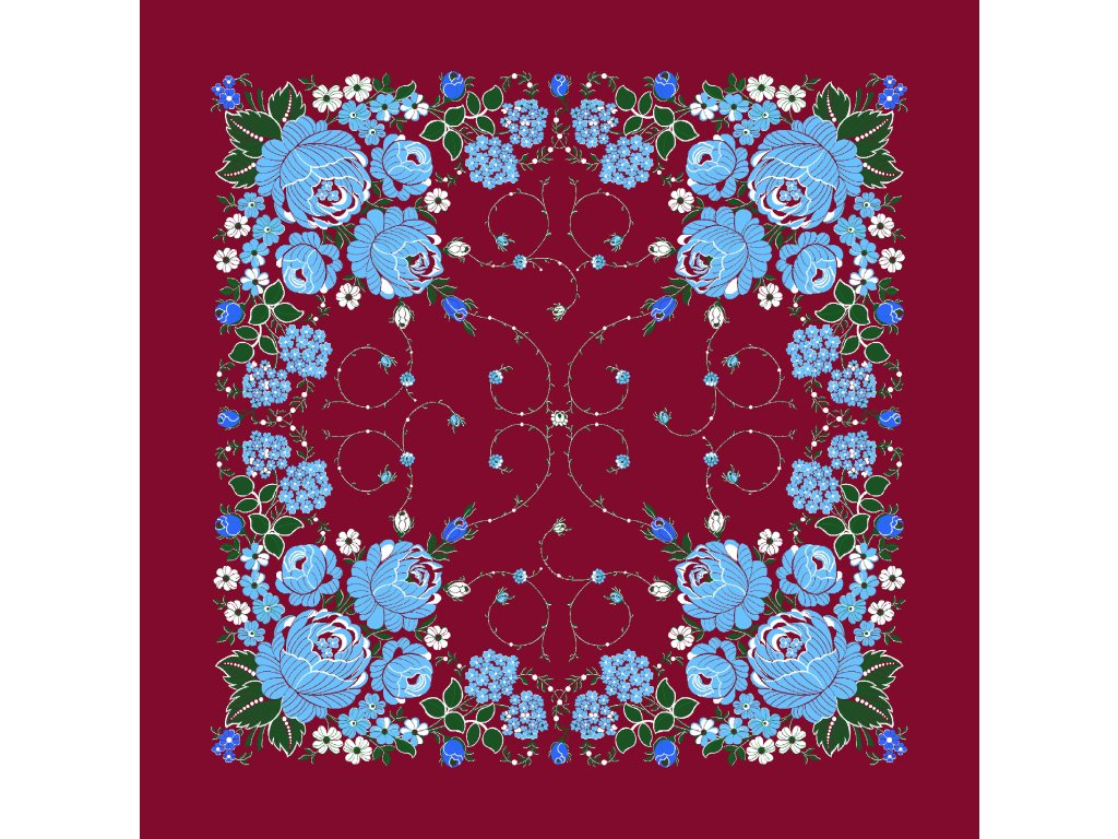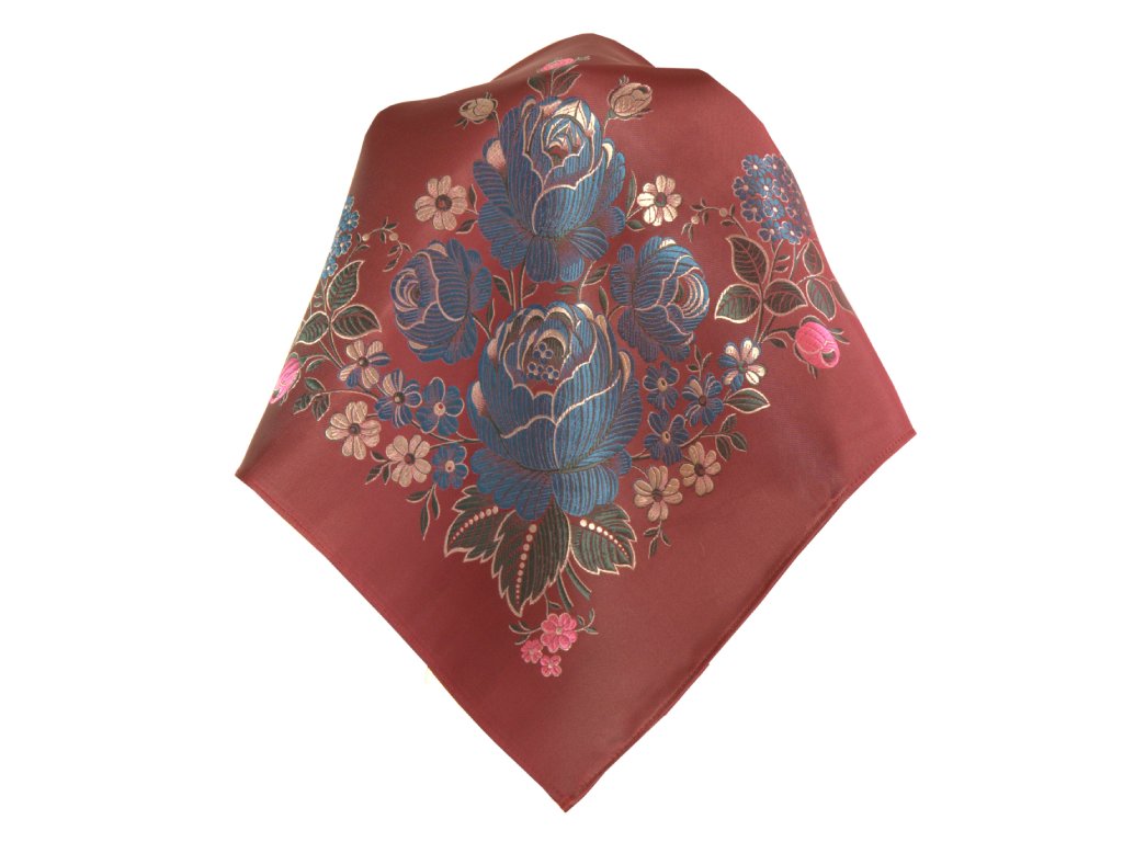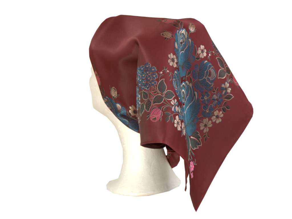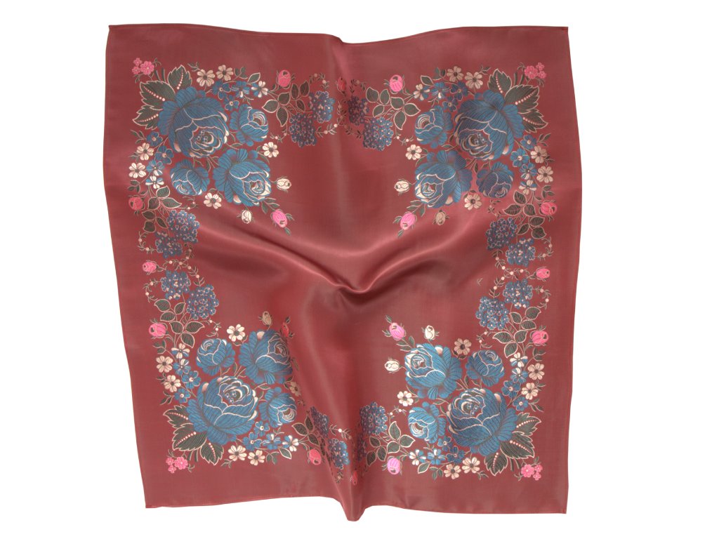 Folklore scarf Ondrit VSh 76x76 HYDRANGEA WITH WHIPS maroon