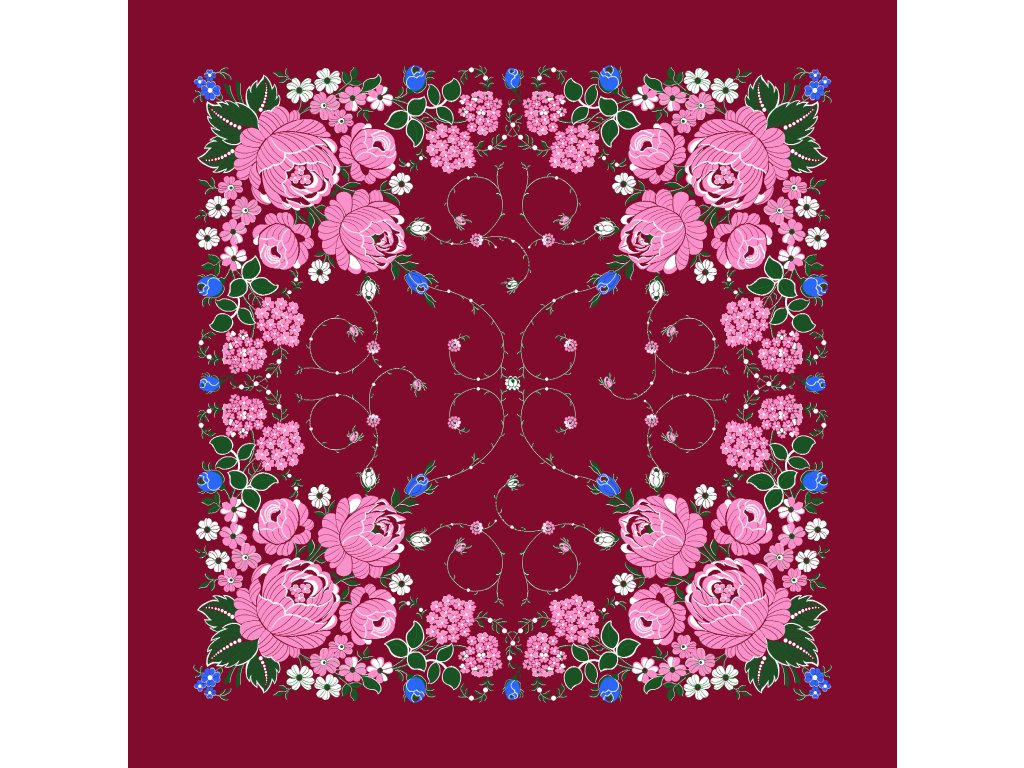 Folklore scarf Ondrit VSh 76x76 HYDRANGEA WITH WHIPS maroon