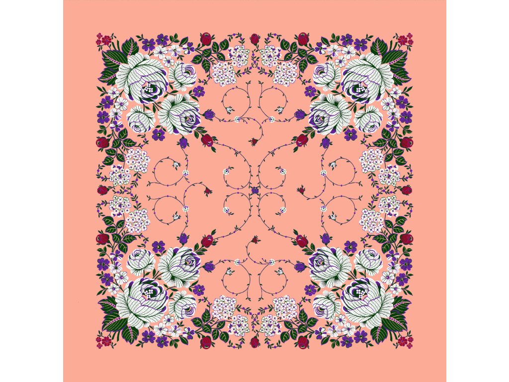 Folklore scarf Ondrit Vsh 76x76 HYDRANGEA WITH WHIPS salmon