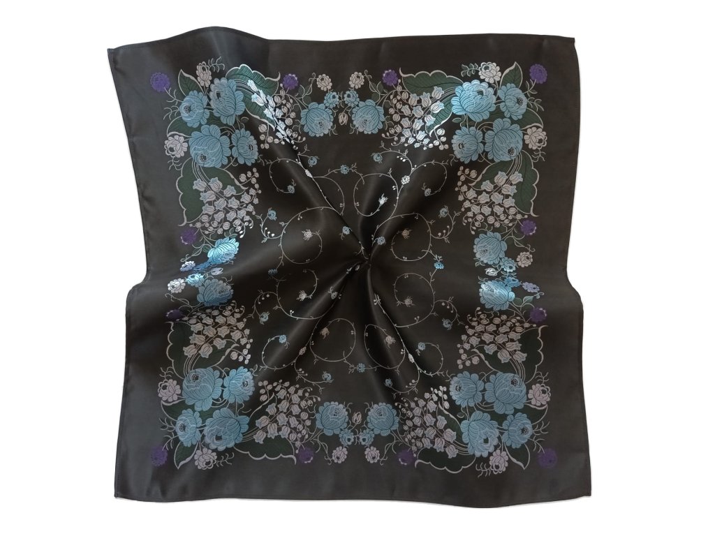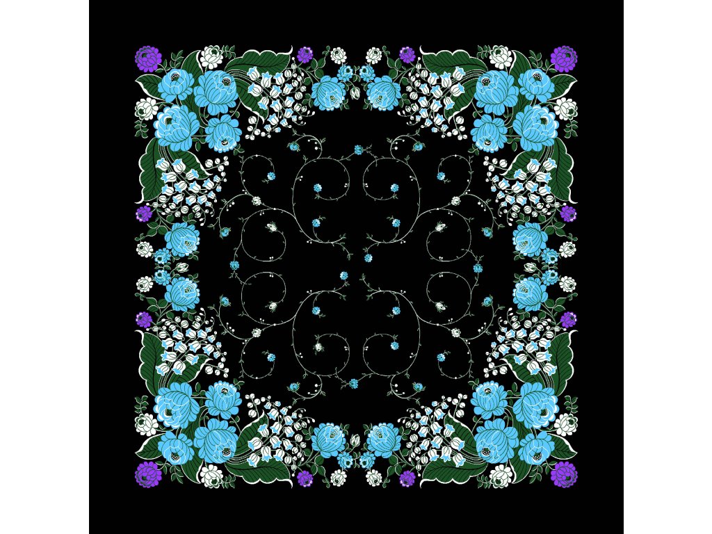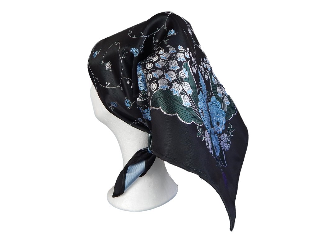Folklore scarf Ondrit VSh 76x76 LILY OF THE VALLEY black