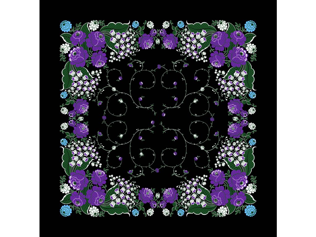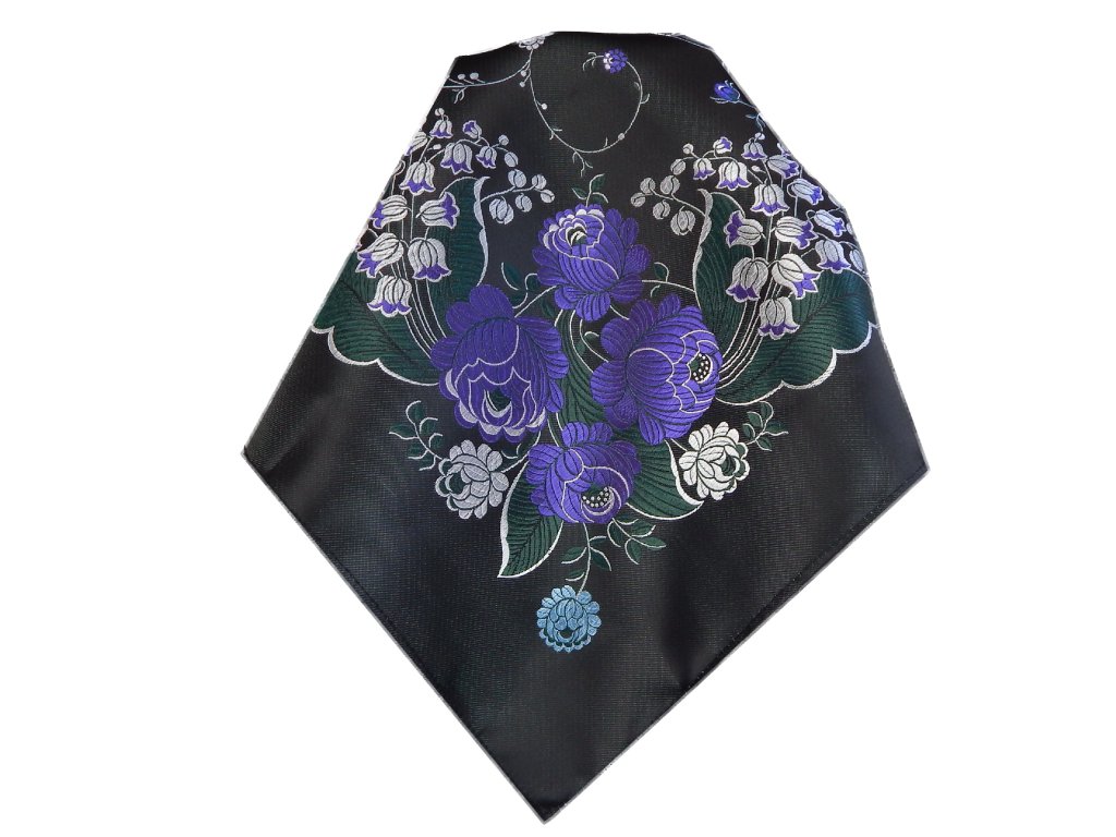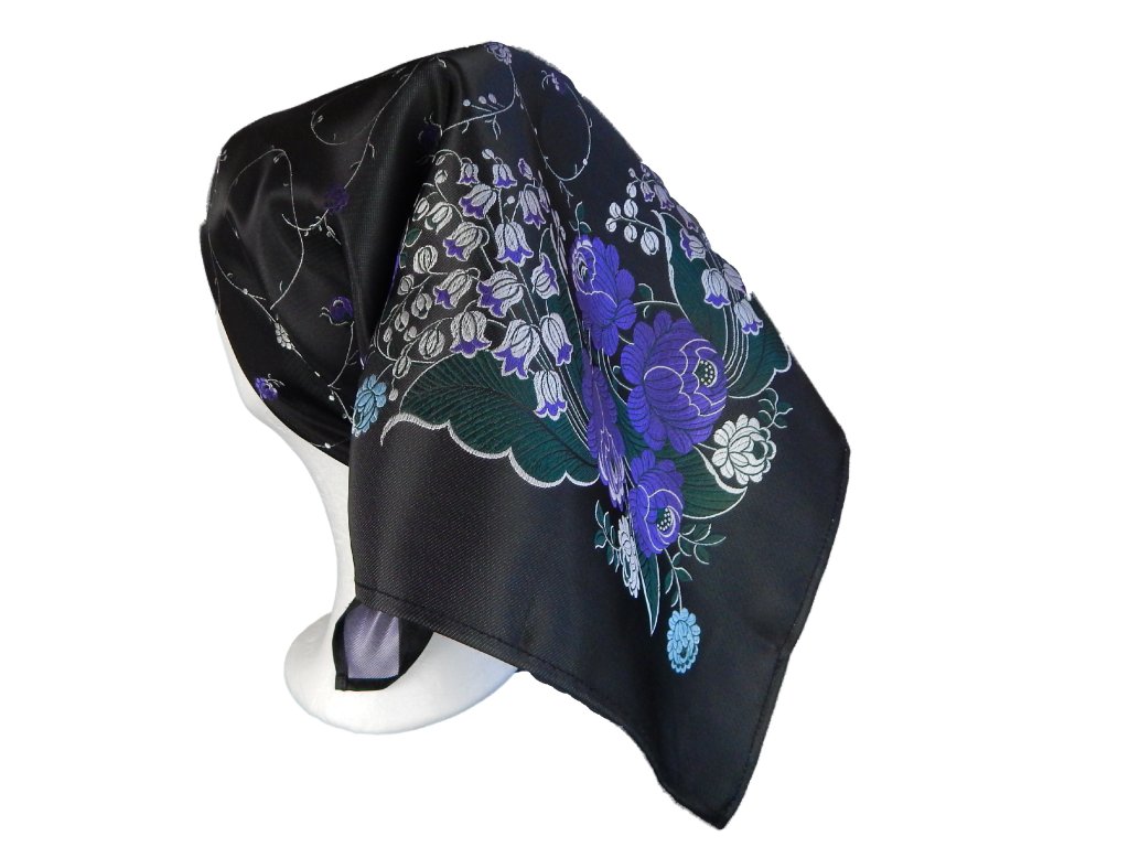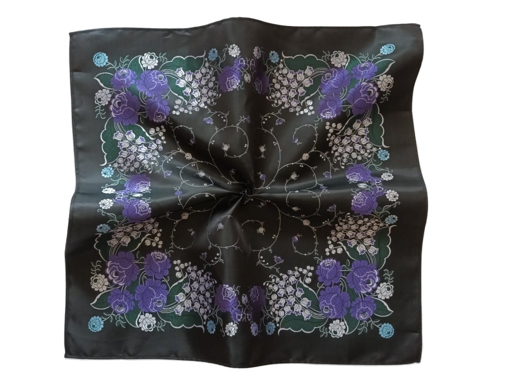 Folklore scarf Ondrit VSh 76x76 LILY OF THE VALLEY black