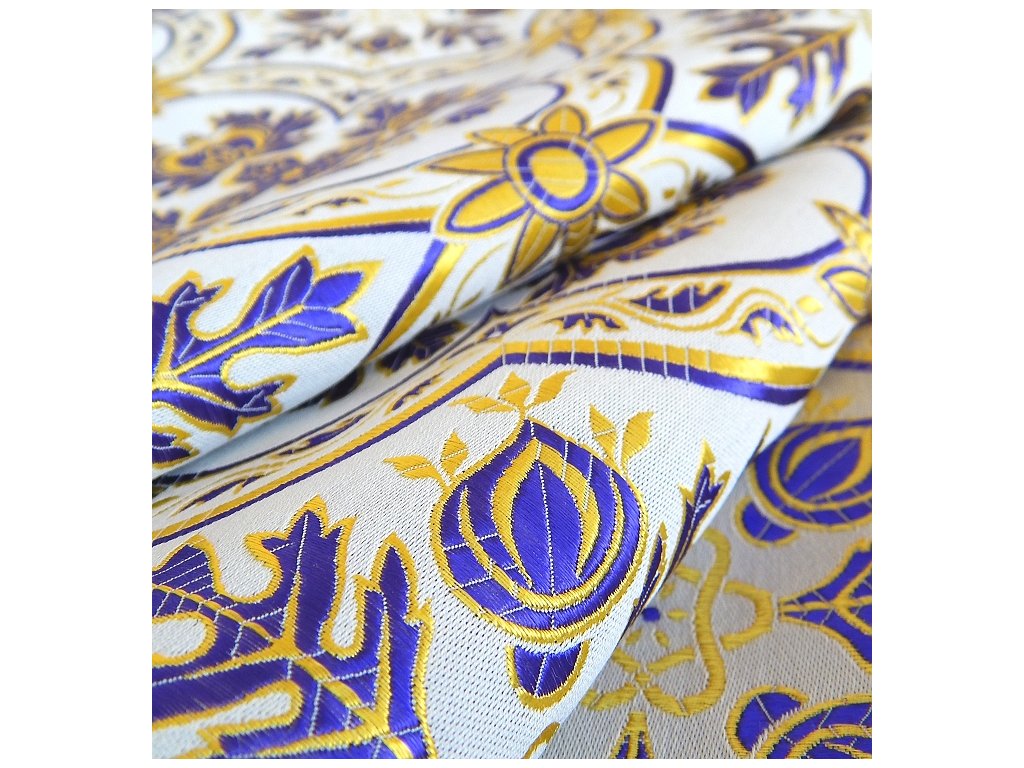 Church brocade got its name because of religious patterns. It has woven gold or silver metallic yarn, which is typical of church attire. These brocades can be supplemented with embroidery. They are suitable for church clothing but also as decorations for the altar and other church decorations.