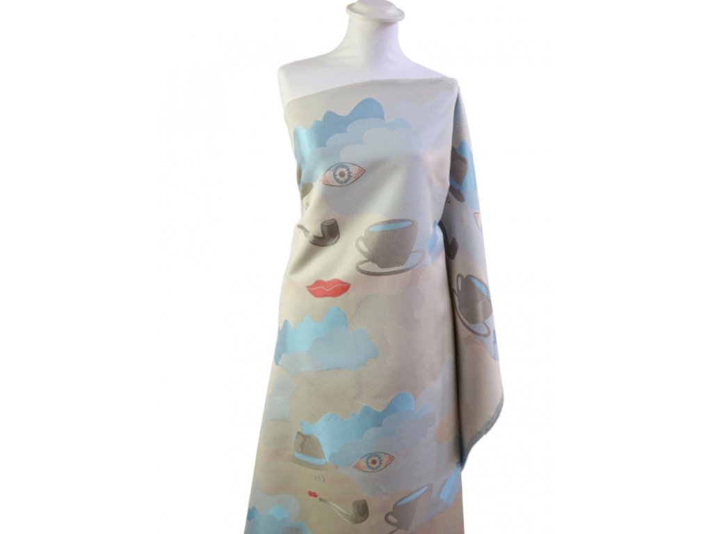 KLOBOUK - Luxusní, nadčasový brokát, který vznikl speciálně pro módní návrhářku Lenku Mulabegovič a její značku Mi fashion label. Surrealistický žakárový vzor jsme vyrobili přímo pro limitovanou KOLEKCI SEN, která je inspirována Surrealisty a jejich ambicemi změnit svět.