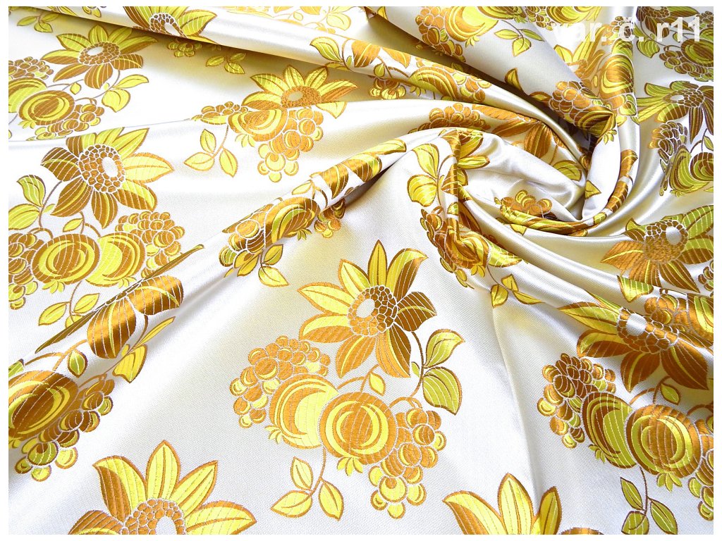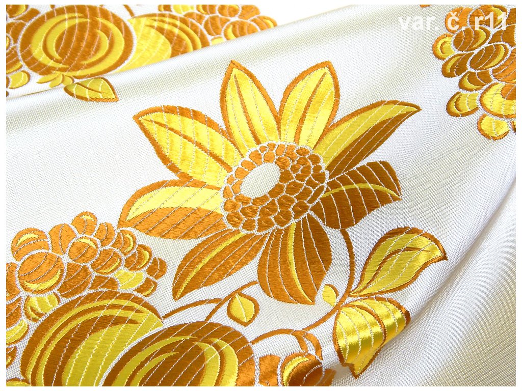 Costume brocade - a unique textile material with woven floral patterns. A wide range of color variations, some complemented by woven rexor. Costume brocade is produced for specific regions for the production of national costumes, costume skirts, aprons, and other costume components.