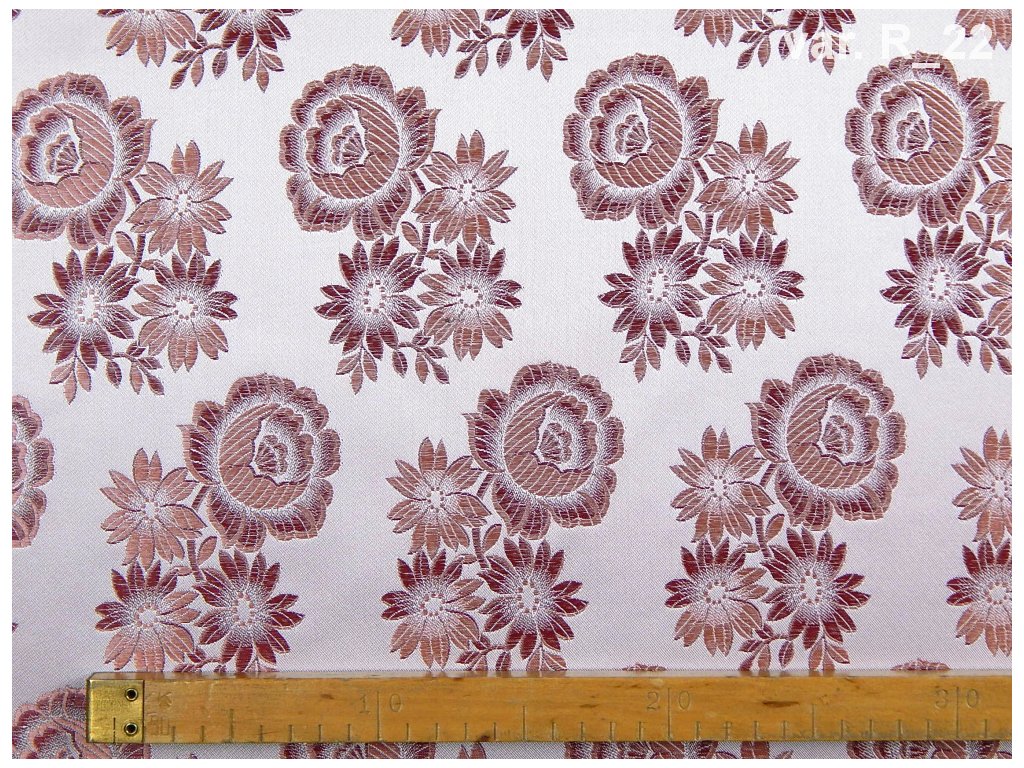Costume brocade - a unique textile material with woven floral patterns. A wide range of color variations, some complemented by woven rexor. Costume brocade is produced for specific regions for the production of national costumes, costume skirts, aprons, and other costume components.