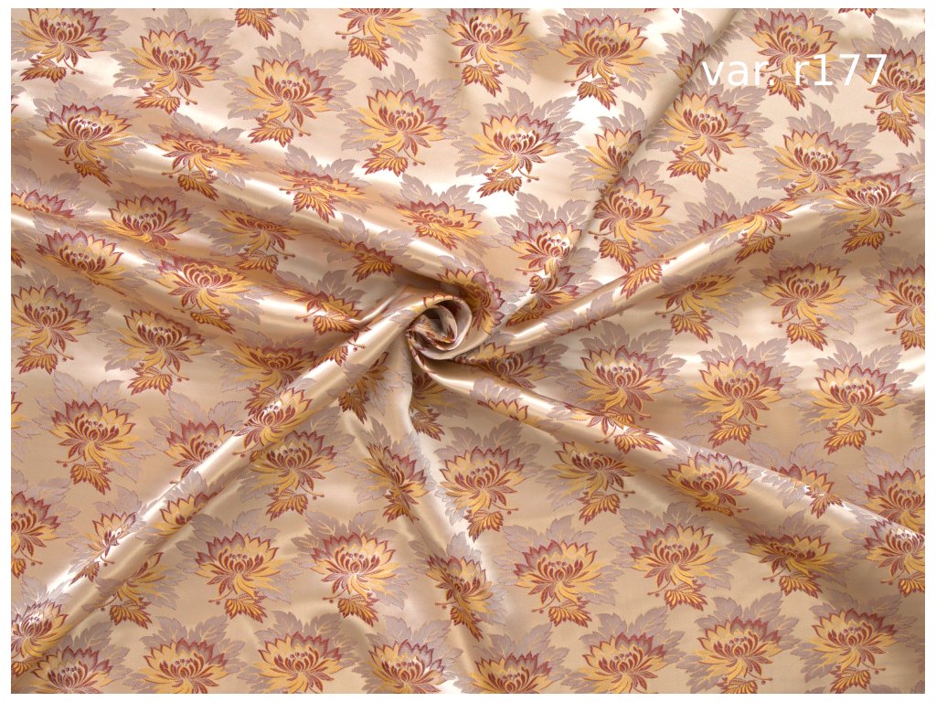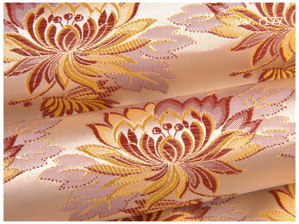 Krojový brokát - jedinečný textilní materiál s vytkanými květinovými vzory. Velká škála barevných variací, tyto v zemitých tónech. Krojový brokát vyrábíme pro jednotlivé oblasti na výrobu národních krojů, krojových sukní, fěrtochů a dalších krojových součástí.
