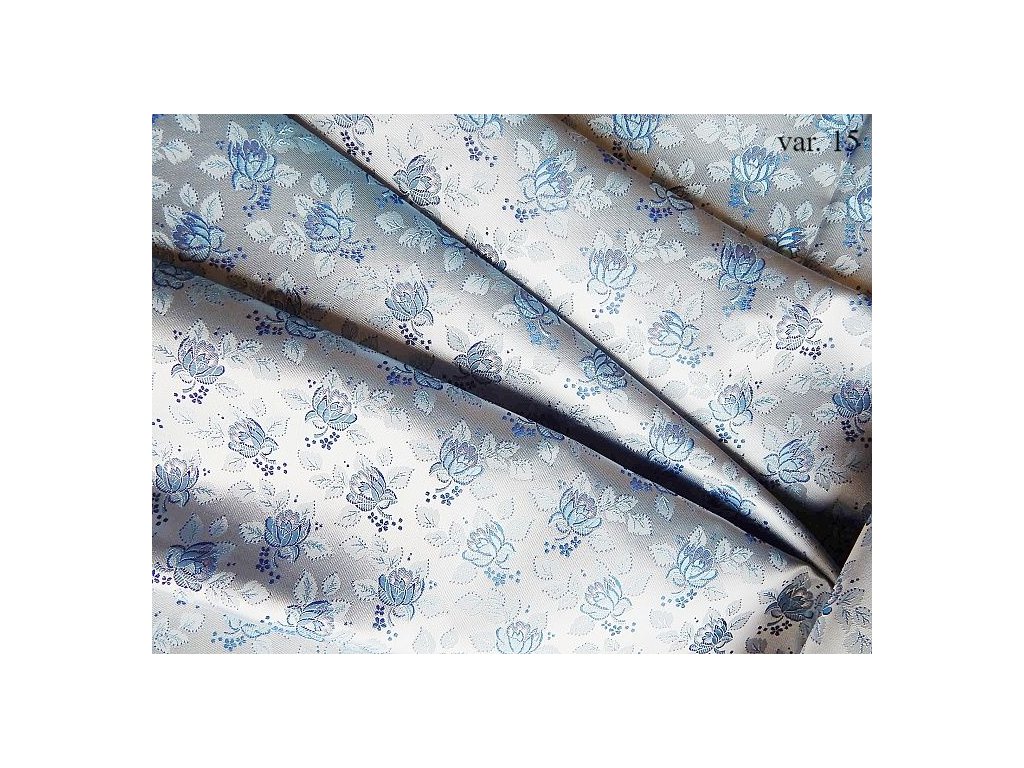 Costume brocade - a unique textile material with woven floral patterns. A wide range of color variations, some complemented by woven rexor. Costume brocade is produced for specific regions for the production of national costumes, costume skirts, aprons, and other costume components.