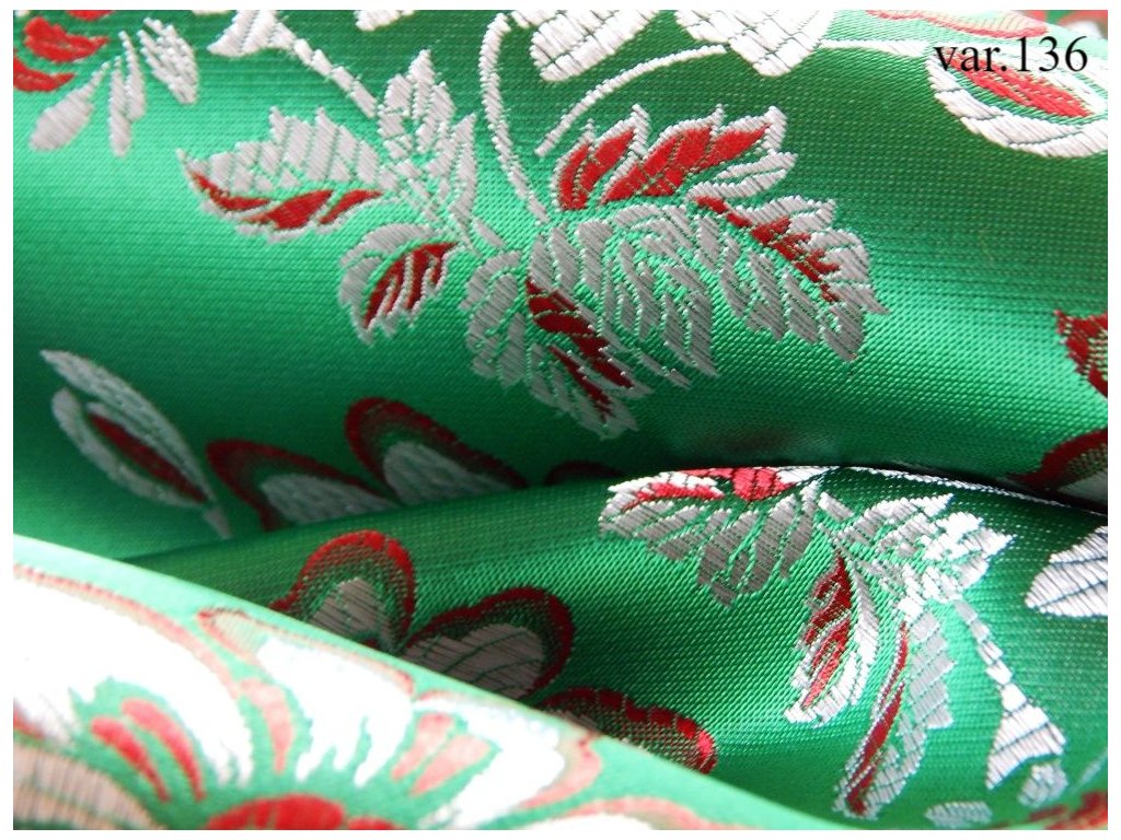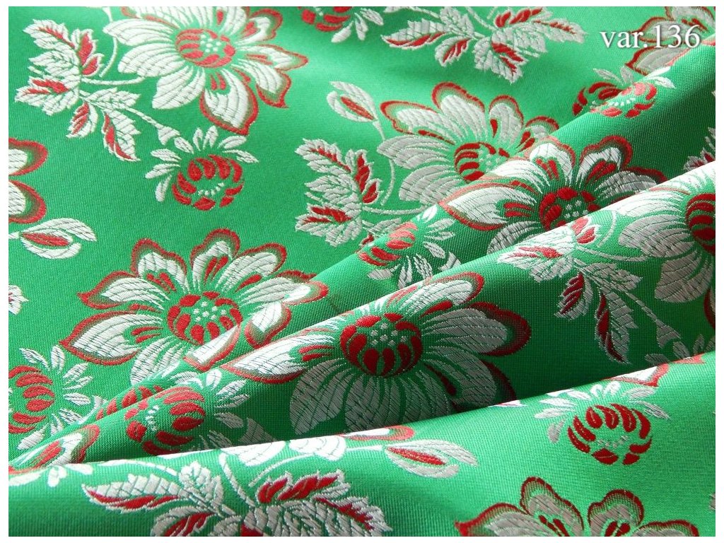 Costume brocade - a unique textile material with woven floral patterns. A wide range of color variations, some complemented by woven rexor. Costume brocade is produced for specific regions for the production of national costumes, costume skirts, aprons, and other costume components.