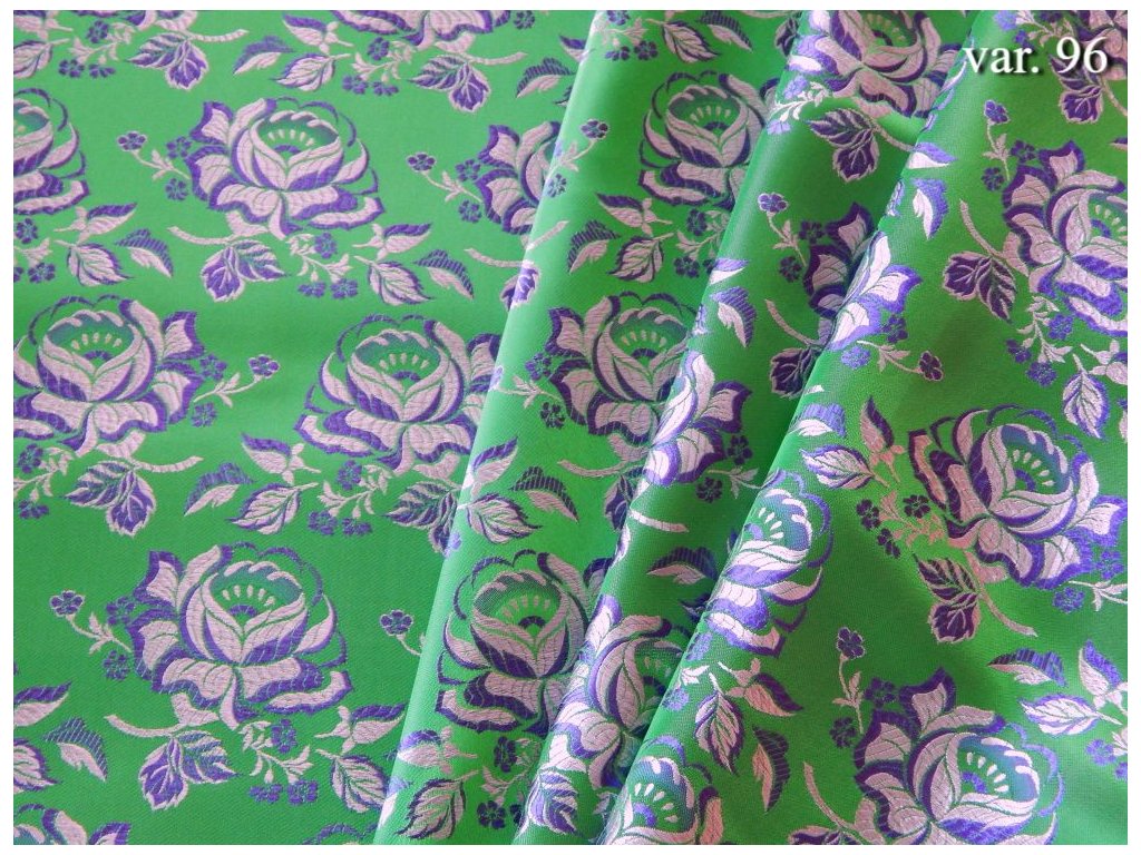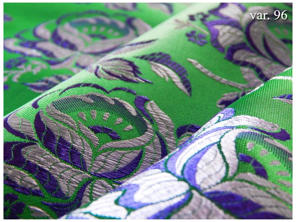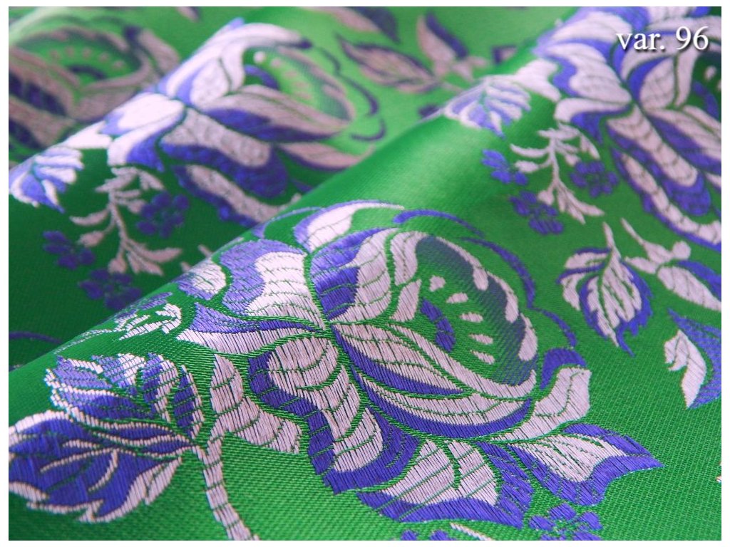 Costume brocade - a unique textile material with woven floral patterns. A wide range of color variations, some complemented by woven rexor. Costume brocade is produced for specific regions for the production of national costumes, costume skirts, aprons, and other costume components.