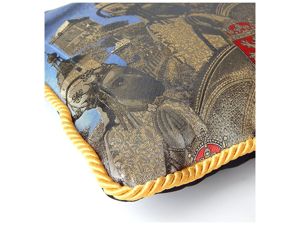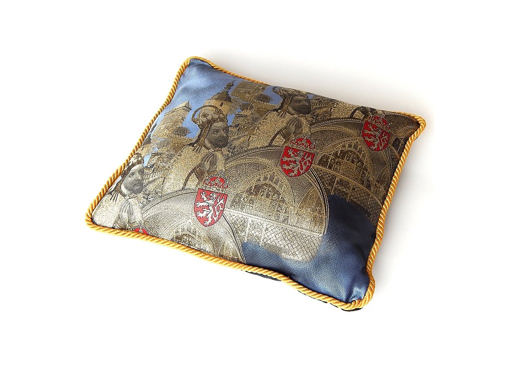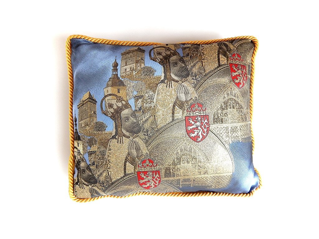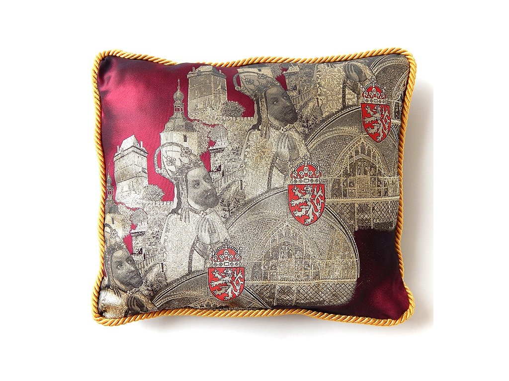 Dekorační polštářek od českého výrobce s tkaným motivem KARLA IV v barvě vínové a zlatého rexoru.