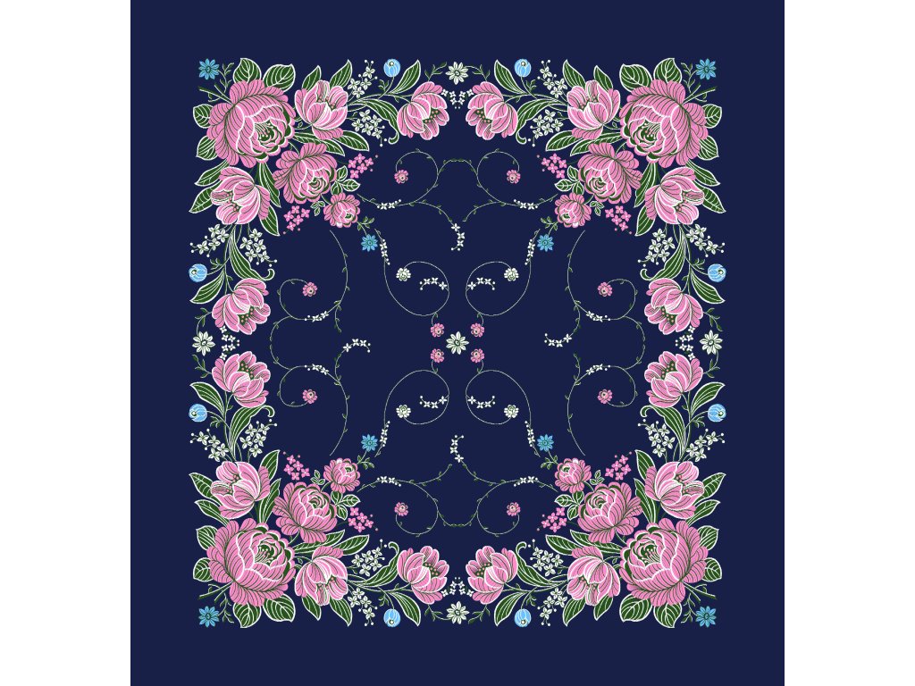 Folklore scarf Ondrit VSh 76x76 FLERA WITH WHIPS blue