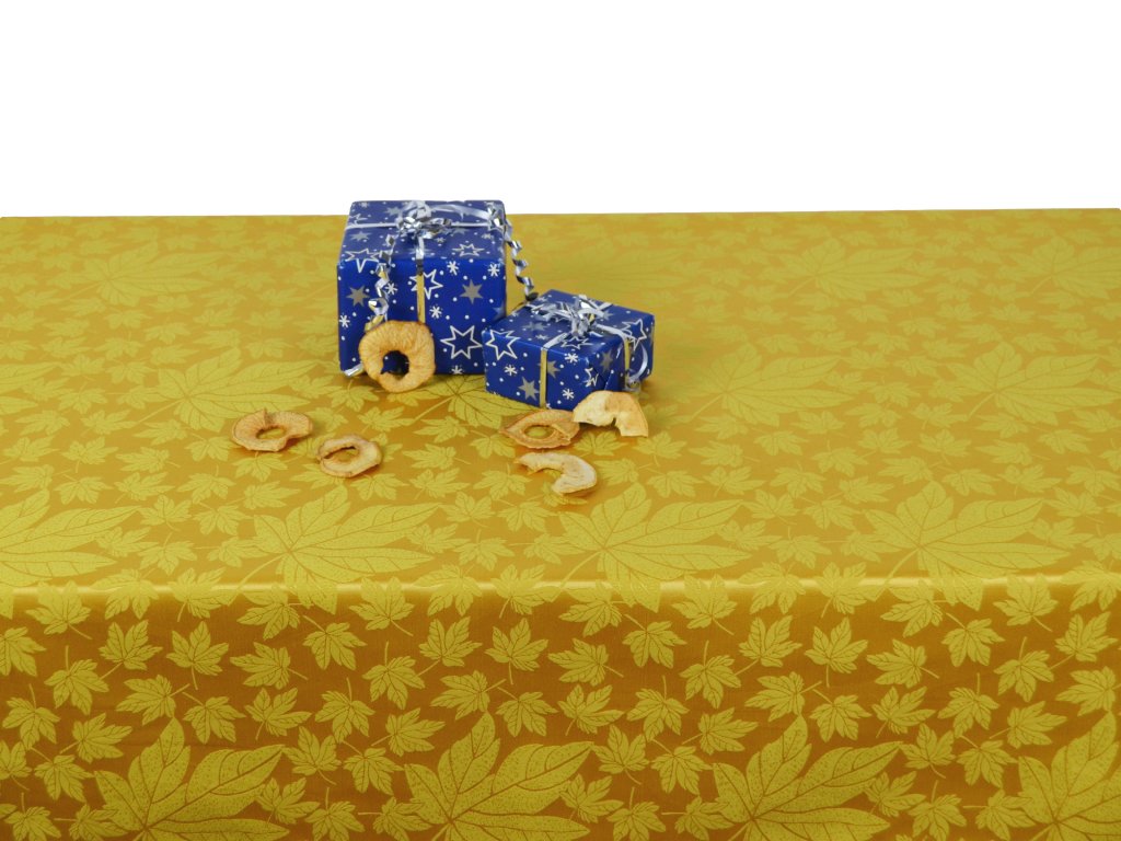 The gold color on the tablecloth will create a beautiful and elegant effect when decorating the table for festive occasions such as weddings, Christmas, birthday parties or formal dinners. A golden tablecloth will add a touch of luxury to the space.