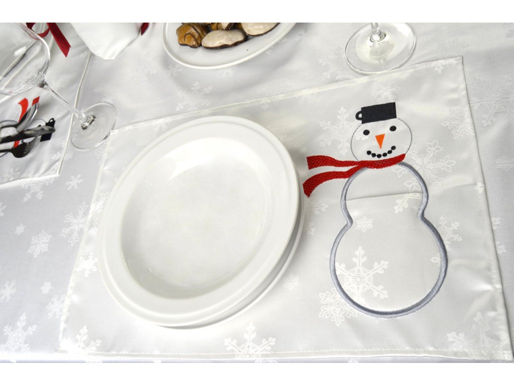 Tablecloth Odaska place setting 30x45 set 2pcs application white snowflakes with snowman