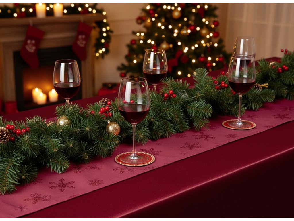 Tablecloth Odaska runner 40x140 flakes burgundy rosé