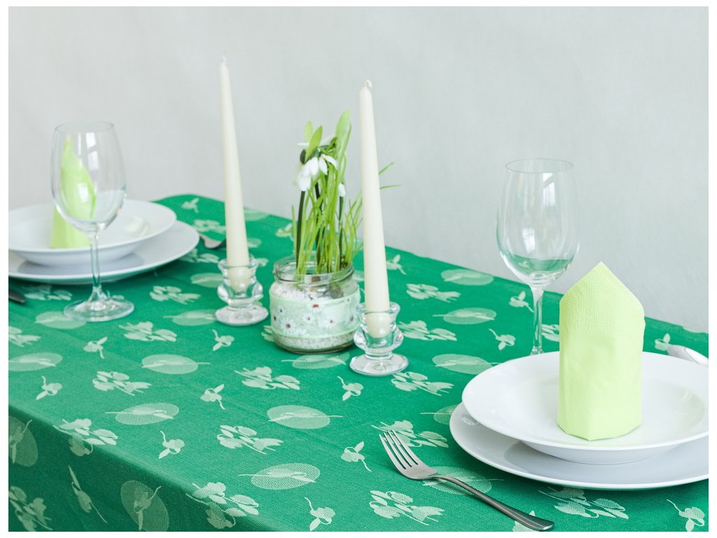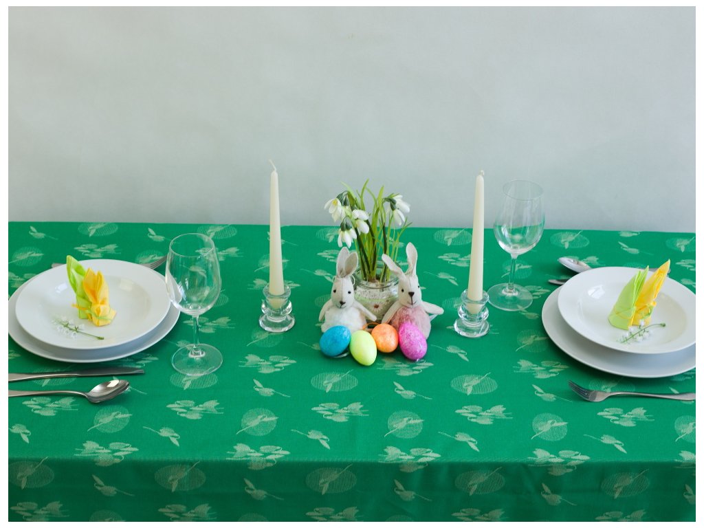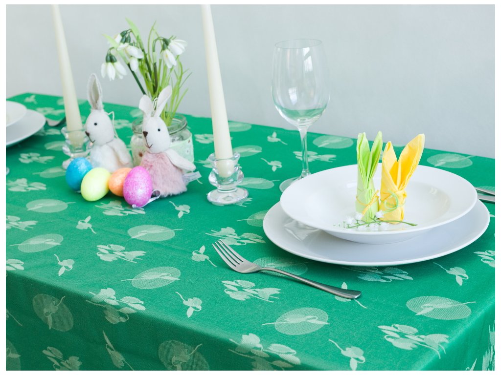Tune your home in the Easter spring mood with the help of our tablecloth. You can use our tablecloth all spring round and you will definitely not get bored. The Teflon treatment protects it from any liquid disaster, such as spilled juice, wine or tomato soup. If you spill any liquid, keep calm, just suck it up with a cloth.
