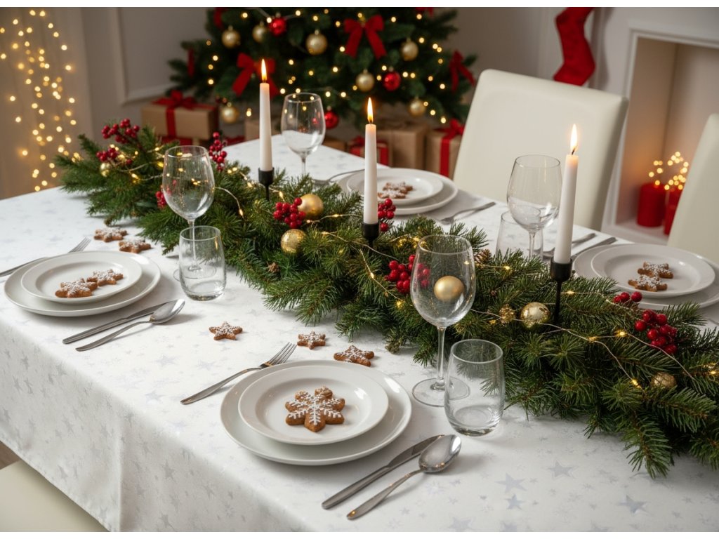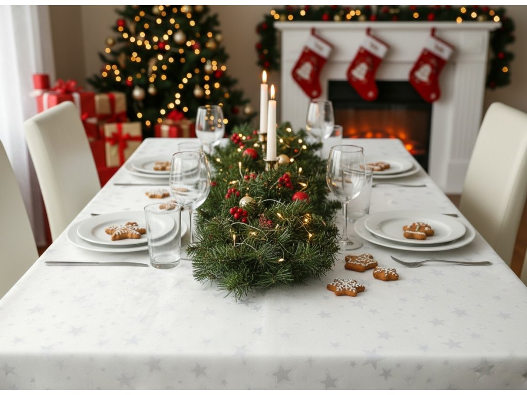 Quality jacquard tablecloth Odaska with woven pattern - stars, suitable for festive boards and for a quiet sitting on a normal day.