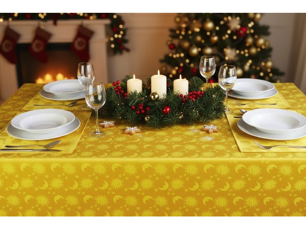 Odaska luxury tablecloth with a woven pattern. Its color makes it suitable for festive dining.