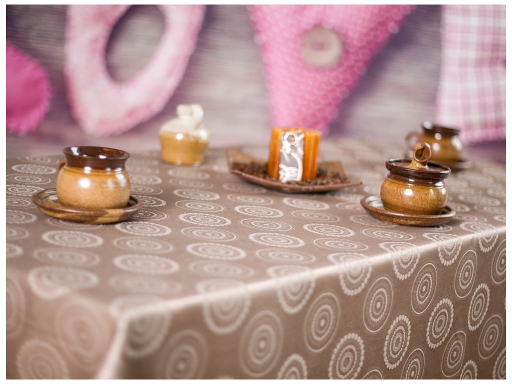 Díky nešpinavé voděodolné úpravě "Teflon" je ubrus vhodný pro každodenní použití. Rozlitou vodu či kávu stačí jen odsát ubrouskem.
