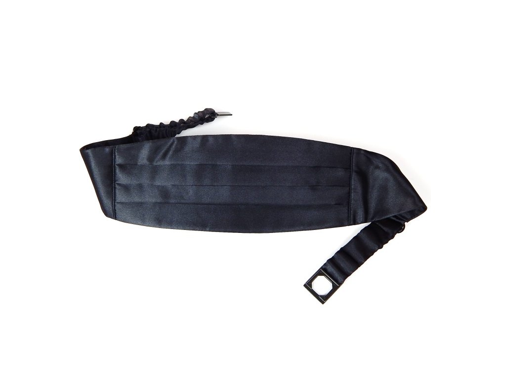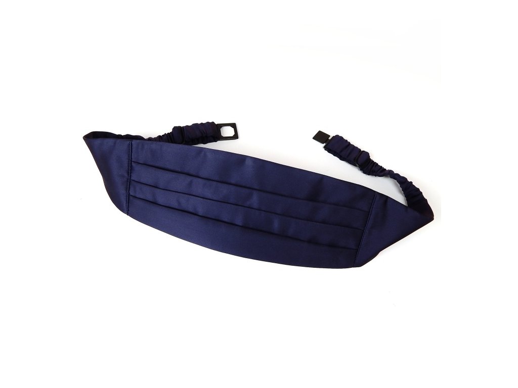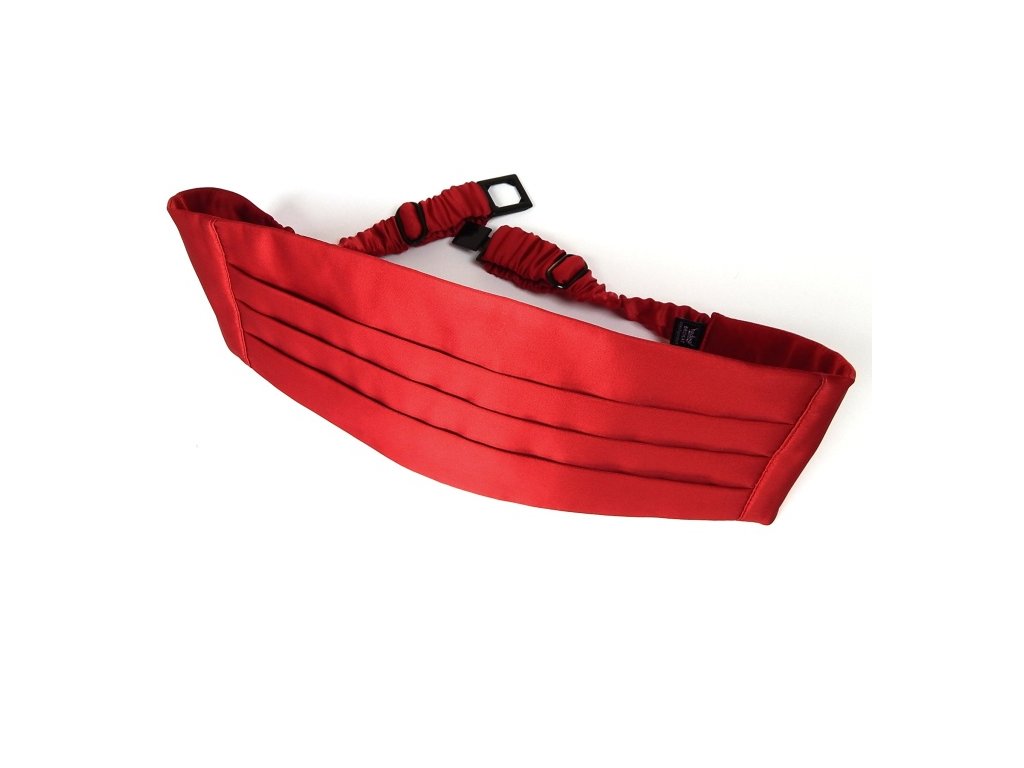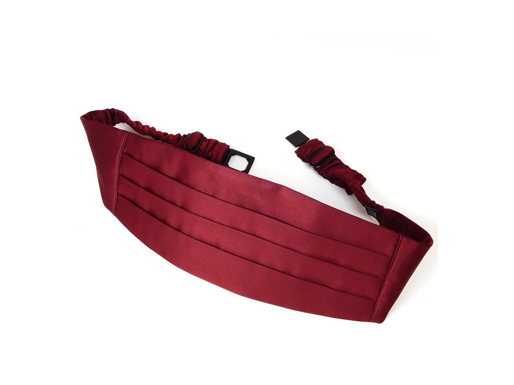 Pás je vyroben z kvalitní polyesterové saténové tkaniny s lesklým vzhledem, má 3 sklady, je vystužený a na obou koncích je všitá široká guma s navlečenou kovovou sponou, délka je nastavitelná. Velikost pásu je 58cm a šířka 14cm.