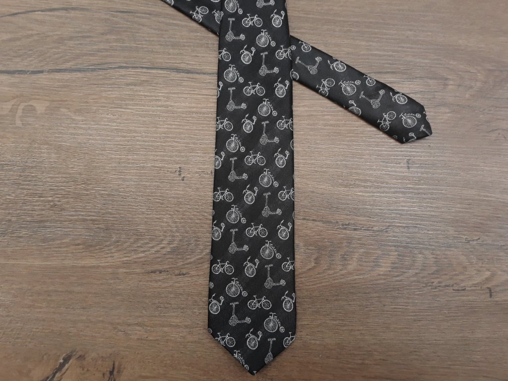 Tato stylová kravata v elegantní černé modré barvě s jemným vzorem bicyklů je ideálním doplňkem pro milovníky cyklistiky i pro ty, kteří chtějí přidat hravý prvek do svého outfitu. Díky detailnímu designu a kvalitnímu zpracování je kravata vhodná jak pro formální příležitosti, tak pro neformální setkání. Je vyrobena z vysoce kvalitního materiálu, který zajišťuje dlouhou životnost a pohodlné nošení. Tento jedinečný kousek dokonale odráží osobnost a styl člověka, který má rád originalitu a nevšední doplňky.