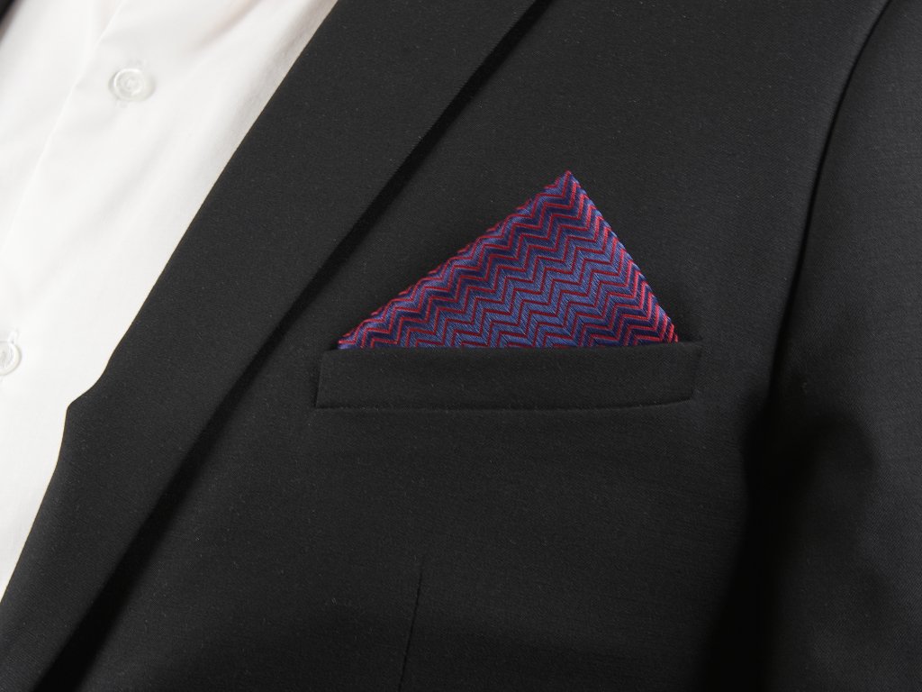 Elegantní kapesníček s jemným brokátovým vzorem Klikatka je vkusným doplňkem.