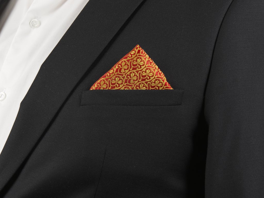 Elegantní kapesníček s jemným brokátovým vzorem Trojlístek je vkusným doplňkem.