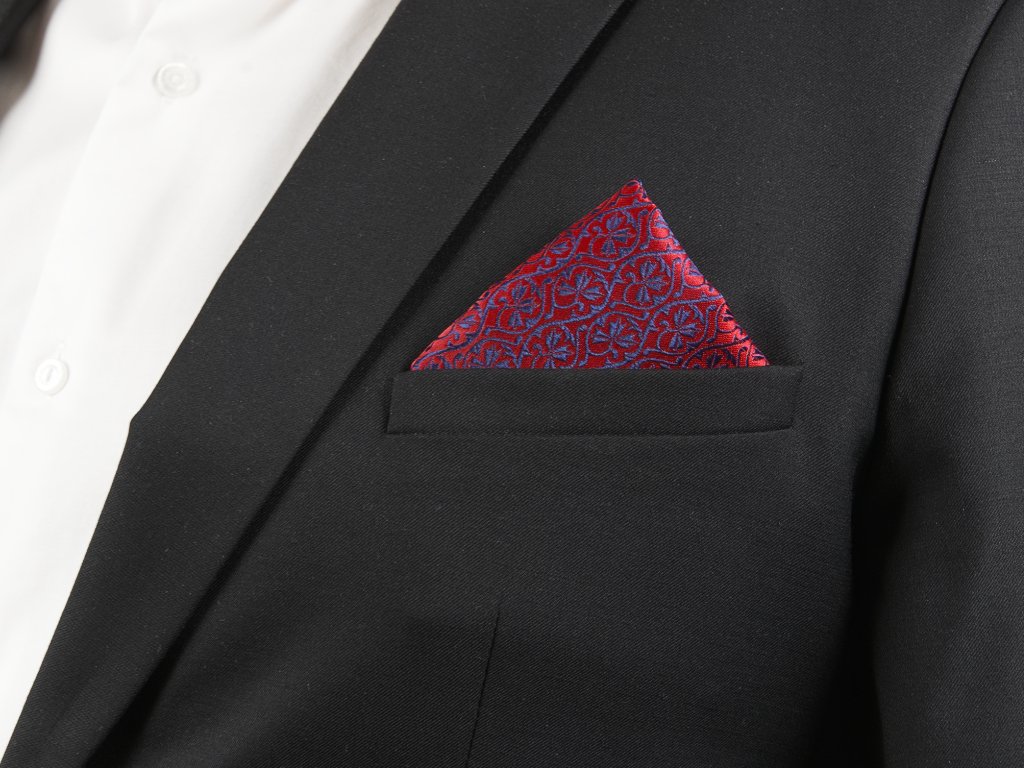 Elegantní kapesníček s jemným brokátovým vzorem Trojlístek je vkusným doplňkem.