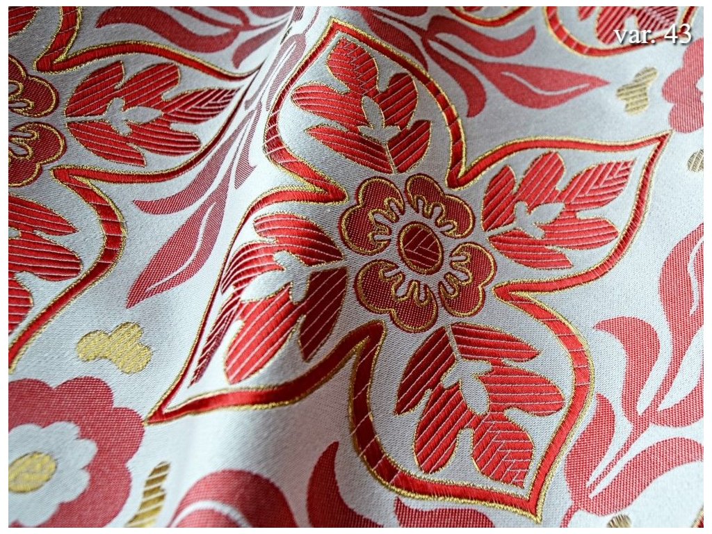 Pro své vzory jsou někdy též nazývány jako liturgické tkaniny. Tento kvalitní, luxusní materiál můžeme využít pro tvorbu historických kostýmů a liturgických oděvů: ornát, roucho, pluviál, dalmatika, štola nejen pro církevní hodnostáře.