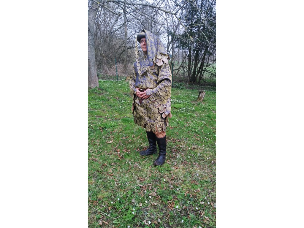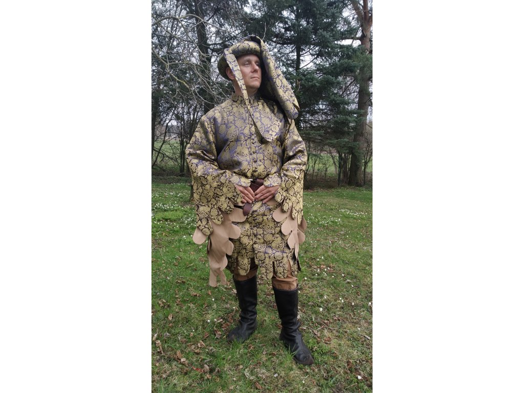 Pes a bodlák - motiv brokátu, který se výborně hodí k šití vašeho dobového kostýmu. Tento vzor byl navržen podle originální předlohy, díky čemuž jsme utkali repliku italského brokátu ze 14. století z oblasti Sicílie. Pes je symbolem věrnosti a oddanosti, kdežto bodlák je charakteristickým znakem odolnosti a obrany.