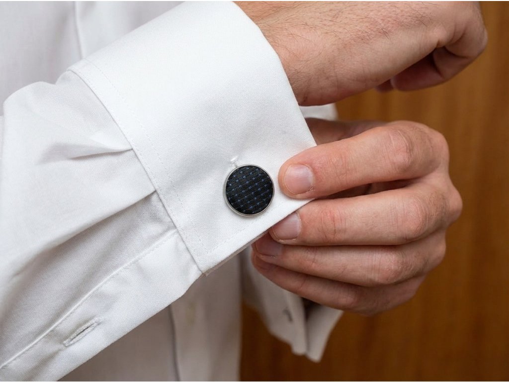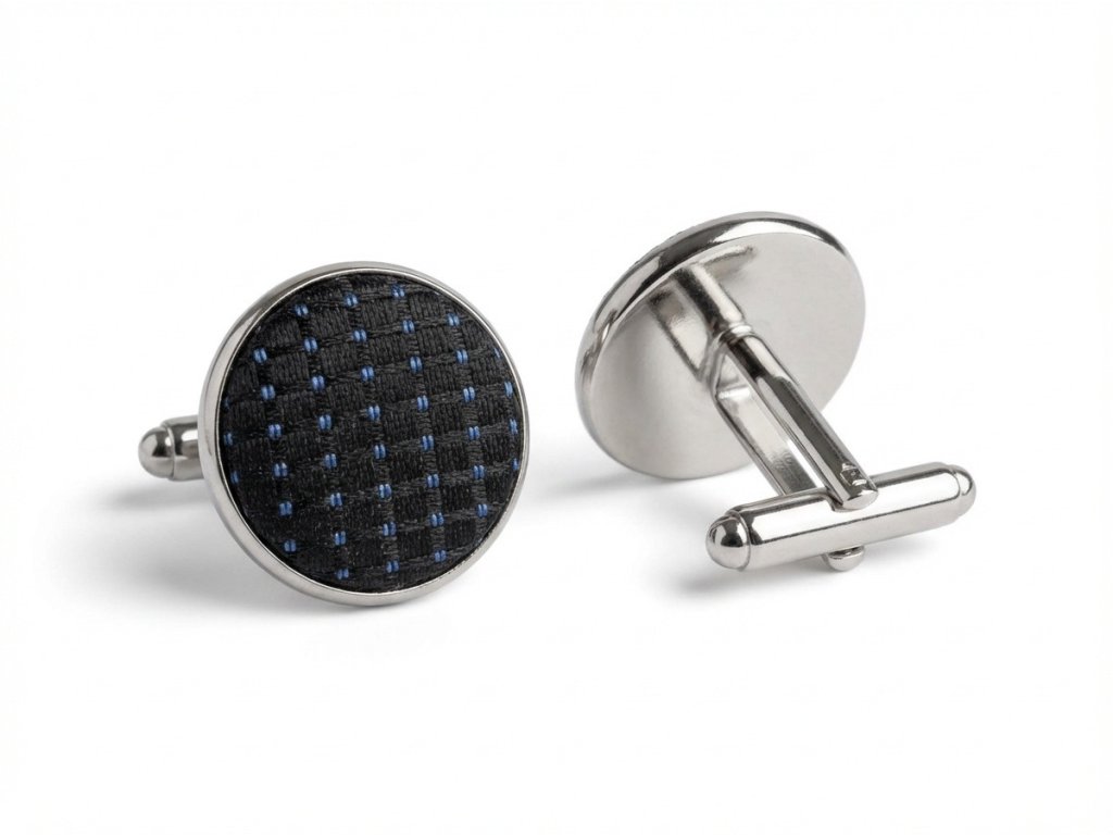 Tyto buttonkové manžetové knoflíčky jsou ručně vyrobené z kvalitního brokátu a kravatoviny v elegantní modré barvě. Spojují klasický design s originálním textilním povrchem, který dodává každé košili osobitý šmrnc a sofistikovanost.