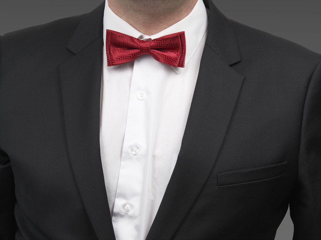 Elegantní motýlek s jemným brokátovým vzorem Klikatka je vkusným doplňkem.
