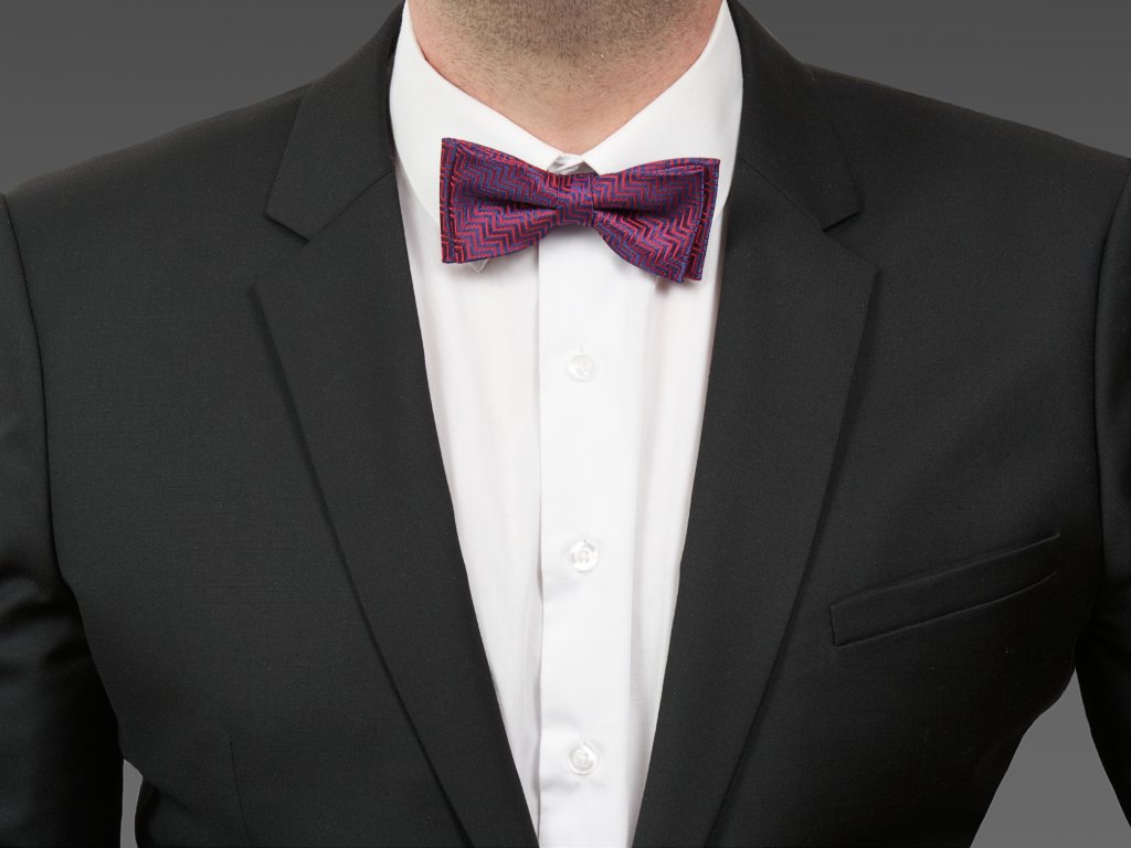 Elegantní motýlek s jemným brokátovým vzorem Klikatka je vkusným doplňkem.