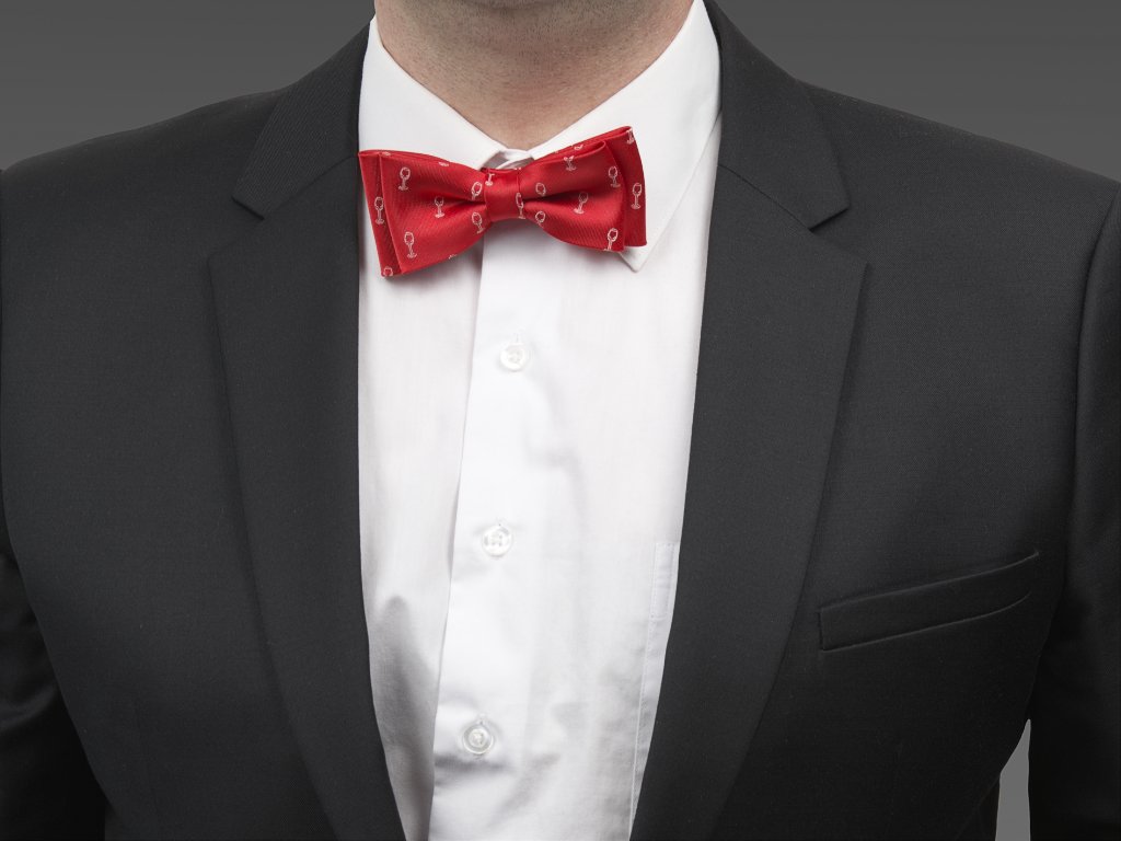 Elegantní motýlek s jemným vzorem Vína je vkusným doplňkem.